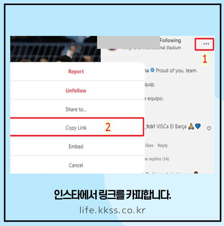 - 인스타그램 스토리의 링크를 컴퓨터에 복사합니다.