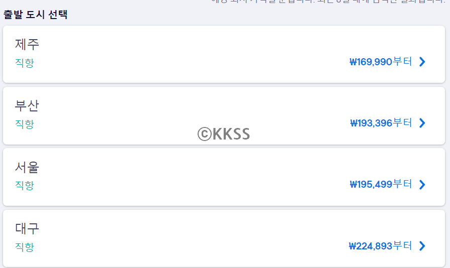 이번에는 출발할 곳을 선택하면 됩니다. 항공권 가격비교 사이트를 사용하시는 분들의 출발지를 선택해 주세요. 저는 서울을 선택해 보겠습니다.
