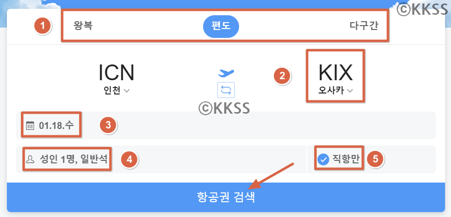 - 왕복, 편도, 다구간 그리고 인원 선택